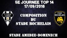 Voici la composition des deux équipes pour le match CA Brive - Stade Rochelais (coup d'envoi à 18h30, arbitre : Mr Mathieu Raynal)