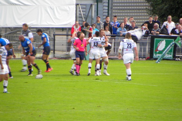 Dès l'entrée sur le terrain, l'ambiance est tendue. David Roumieu, le talonneur bayonnais, échange des mots avec Arnaud Mela dès la sortie du tunnel (à retrouver un peu plus bas dans l'article dans la vidéo de jour de rugby). Ça promet pour la suite mais finalement ça peut expliquer les nombreux accrochages qui ont émaillé la première période.