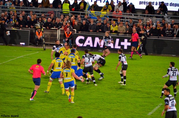La suite va malheureusement nous donner raison. Clermont remonte le score au fil des minutes. Le CAB cravache de minutes en minutes pour conserver cet avantage. En témoigne cette touche. Elle est gagnée de justesse par l'alignement briviste qui collectionne les blessés graves depuis le début du match (Swanepoel fracture du péroné, Barnard coude, Da Ros le genou) plus les cartons jaunes.
