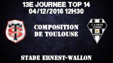 Pour cette rencontre, Brive change 7 joueurs pour débuter ce dimanche à Ernest Wallon alors que Toulouse retrouve plusieurs de ses internationaux qui devraient lui faire du bien.
