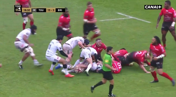 Le premier quart d'heure ne s'est pas passé comme prévu pour Brive, surtout avec le vent en sa faveur. Toulon a fait le break avec déjà deux essais marqués. Mais le CAB a une belle occasion pour recoller au score. A la suite d'une pénaltouche à l'entrée des 22 varois, les avants choisissent un alignement complet. Guillaume Ribes trouve Dominiko Waqaniburotu sans opposition. Ça sent le maul !