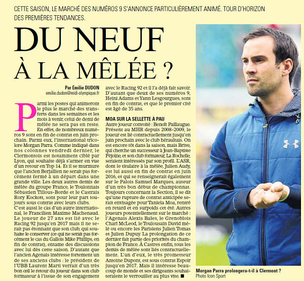 Midi Olympique, dans son édition d'aujourd'hui (ndlr : 25/09), lance les hostilités et recense les premiers bruits qui agitent les coulisses des clubs de rugby. Si les internationaux sont la cible prioritaire des recruteurs, un poste risque créer un effet de chaises musicales : le demi de mêlée. Si le journal fait le point de toutes les tendances du moment, une retient tout particulièrement notre attention : Brive serait sur la piste de Benoit Paillaugue.