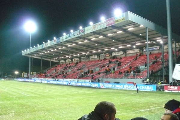 Pas de neige à Oyonnax mais du froid. La photo suivante montre nos groupes de supporters congelés. On peut apercevoir le kop cabiste avec leur banderole, les gaillards du CABCL avec les tambours, des membres de l'amicale des 100% coujous et le gaillard man avec son mégaphone.