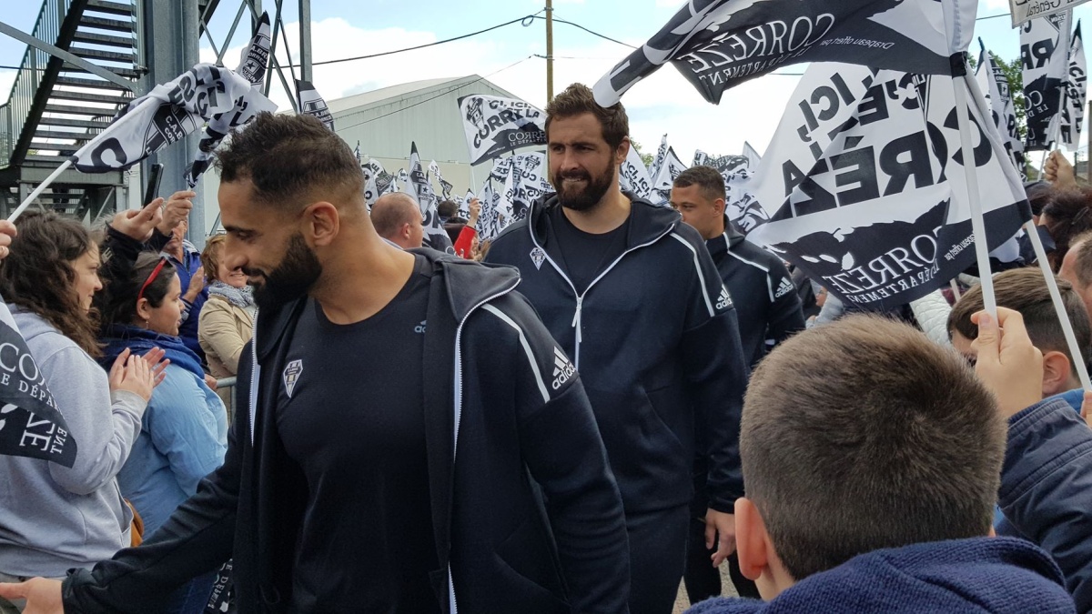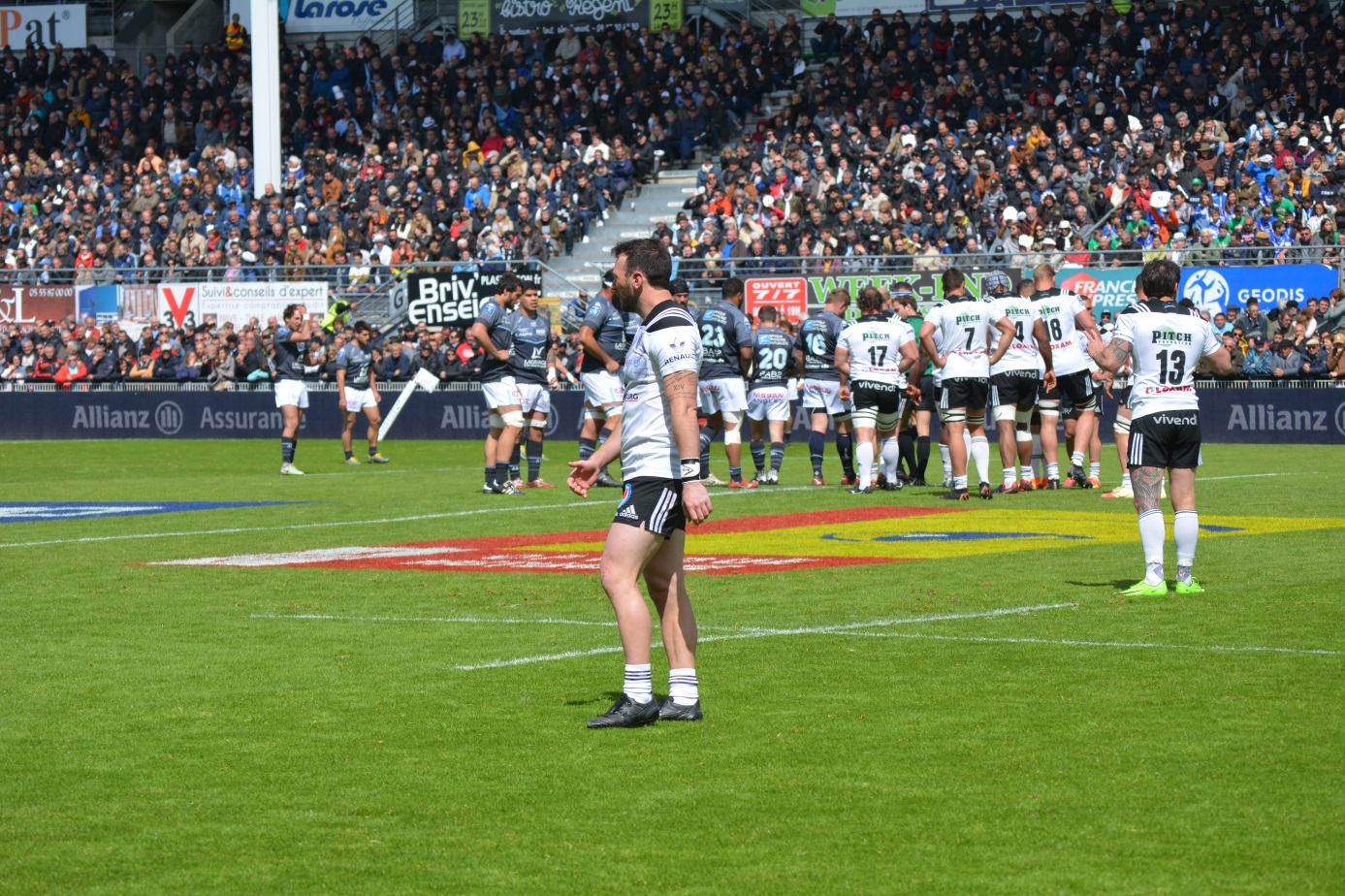 Tout ça nous a donné soif, direction le Café des Monédières pour la traditionnelle bière d’avant match. On rencontre les habitués, on se salue et puis de loin, on entend des chants qui se rapprochent. Ça y est, ils sont là : la Pena Baiona arrive. Malgré l’enjeu du match, c’est une solidarité de supporters qui s’installe rapidement. Brivistes et Bayonnais chantent ensemble, fort, toujours plus fort ! Après l’hymne de l’Aviron Bayonnais, c’est au tour de la chanson des 3 Cafés Gourmands de résonner dans l’espace Derichbourg. Mais il est l’heure, chacun rejoint sa place et comme on dit « Le spectacle va commencer ».