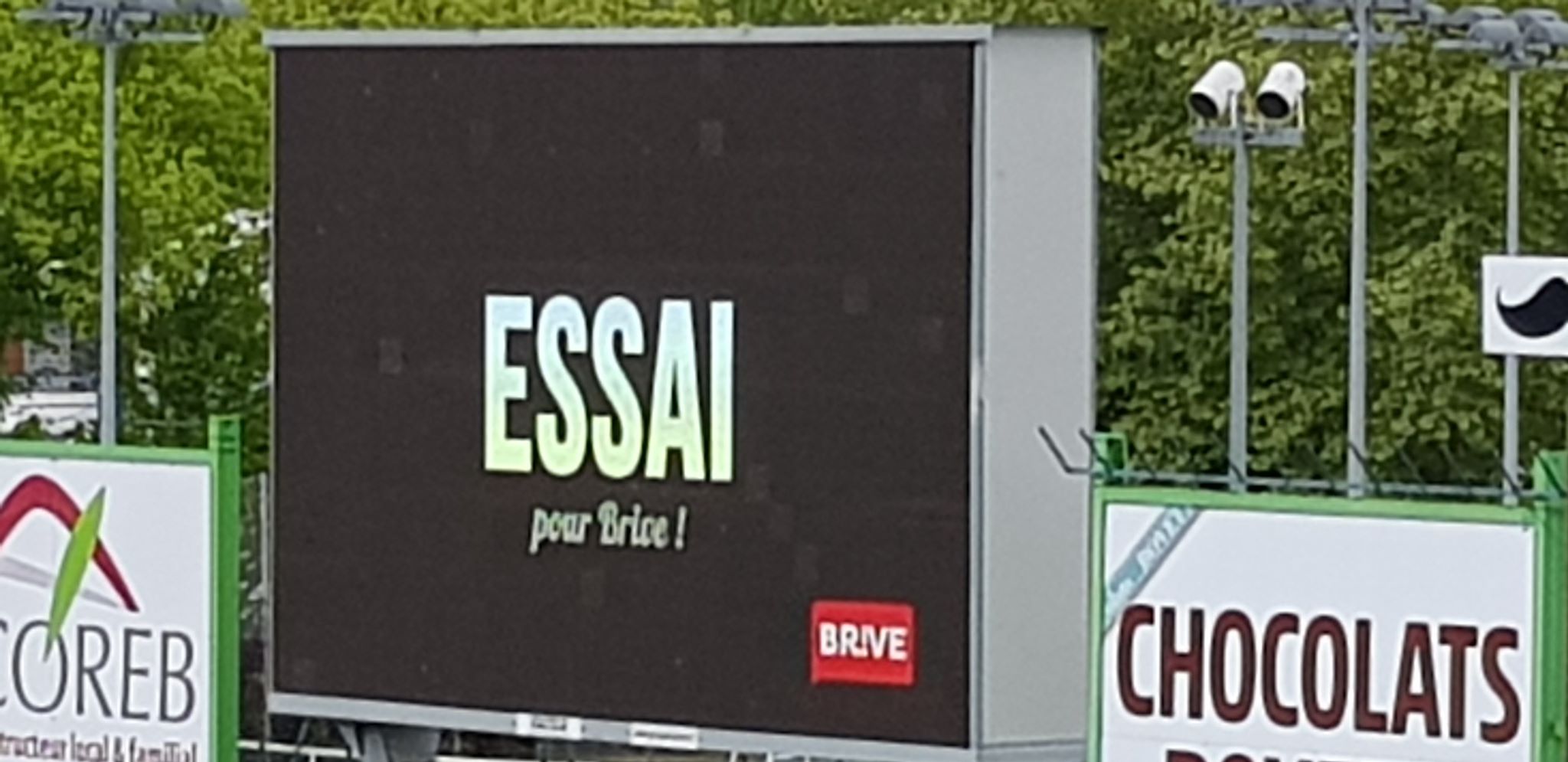 On est à plus de la moitié de la 1ère période et toujours pas de points ! On commence à prendre peur surtout que les 2 essais refusés nous restent en travers de la gorge. Et cerise sur le gâteau basque, un 3ème essai de Franck Romanet est annulé parce que nous avons joué trop vite !!! On ne peut s’empêcher de penser que l’arbitre cherche les excuses possibles pour annuler les essais brivistes.