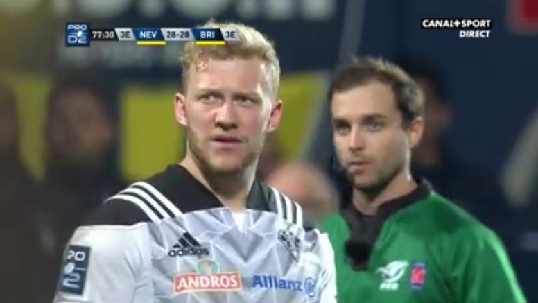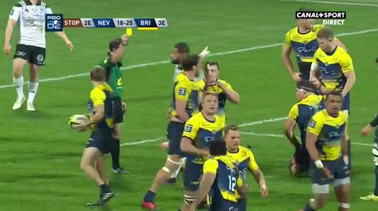 48’, faute volontaire de Peet Marais qui prend un carton jaune. Il en faut pas plus pour Nevers encore avec un ballon porté de marquer leur 2ème essai, transformé par Vuillemin (18-25, 51’). L’indiscipline règne encore chez les brivistes et ça commence à faire beaucoup.