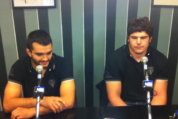 Pour commencer ce Bleu Blanc Noir, petite présentation des joueurs. Damien Lavergne est né à Brive et il a joué à Bretenoux avant de rejoindre Brive en cadets. Heureusement pour nous, il a confié qu'il n'était pas tenté pour un retour à Bretenoux. Thomas Laranjeira est lui originaire de la région lyonnaise et plus particulièrement Belleville où il a fait toutes ses classes avant d'intégrer Bourgoin et le pôle espoir à Brive. Il y rencontrera Damien et depuis, ils jouent ensemble en première et ils sont partenaires de chambre lors des déplacements.