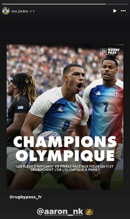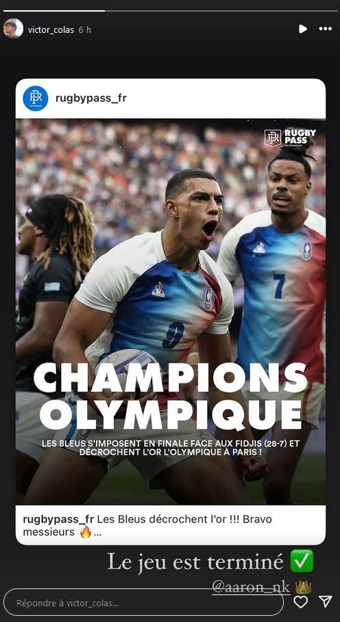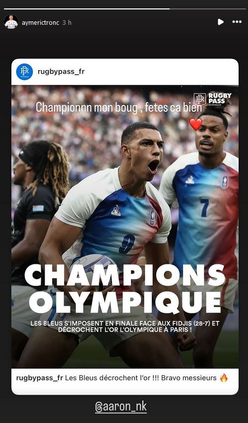 Tu étais à Brive mais tu as décidé de te concentrer pleinement dans ce projet olympique. Choix absolument payant. Tu l'as cette médaille Aaron ! 🥇🇫🇷👏👏👏 #FRAFIJ #France7 #7Ensemble #PARIS2024 #RugbySevens #Olympics pic.twitter.com/k56e9B2pPA
