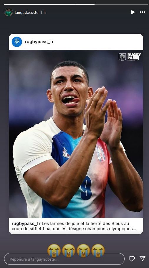 On vient juste de gagner notre 1/4 mais j'ai les larmes aux yeux. Les émotions qu'on vit, dans ce stade, je n'ai jamais vécu ça de ma vie. Je me sens tellement privilégié, tellement honoré d'avoir cette chance là. On a deux gros matchs samedi et ... feu ! #PARIS2024 #RugbySevens pic.twitter.com/kuxj5d3aWR