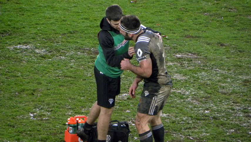 Sur une attaque au large, Arnaud Mignardi se fait prendre par Semi Radradra qui réalise un gros plaquage offensif. Mais derrière, plusieurs joueurs tombent sur les deux hommes. Le centre briviste, pourtant dur au mal, se relève mais se plaint de la clavicule. Quelques instants plus tard, il cède sa place.