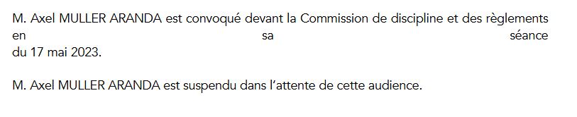 Extrait de la convocation de la commission de discipline
