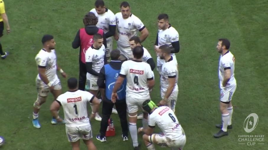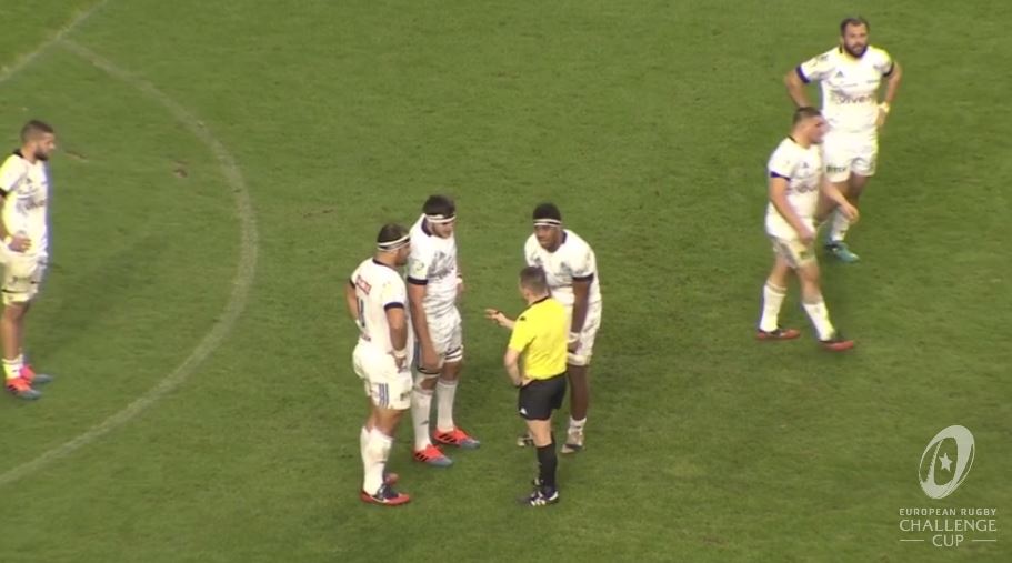 L'arbitre tente d'expliquer ses décisions contre la mêlée briviste