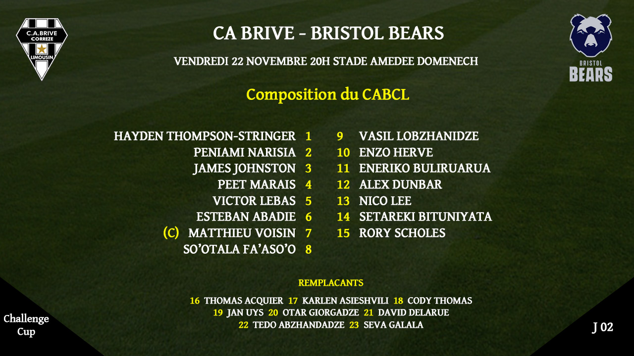 Voici le XV de départ du CA Brive pour la réception de Bristol :