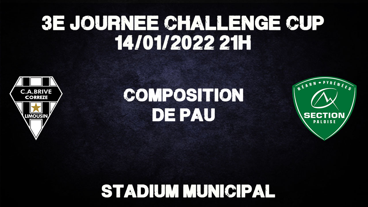 Le contexte et les équipes seront bien différents pour ce match opposant à nouveau Brive et Pau. Si pour le premier match de 2022, la Section a largement battu le CAB, le plongeant encore plus dans sa crise de résultats, cette semaine, c'est de la Challenge Cup. Mais les palois entendent bien corriger des aspects de leur jeu qui n'ont pas marché à Lyon et jouer plus relâcher dans une compétition sans objectif réel en terme de résultat. Se faire plaisir et retrouver du plaisir avant de revenir en Top 14.