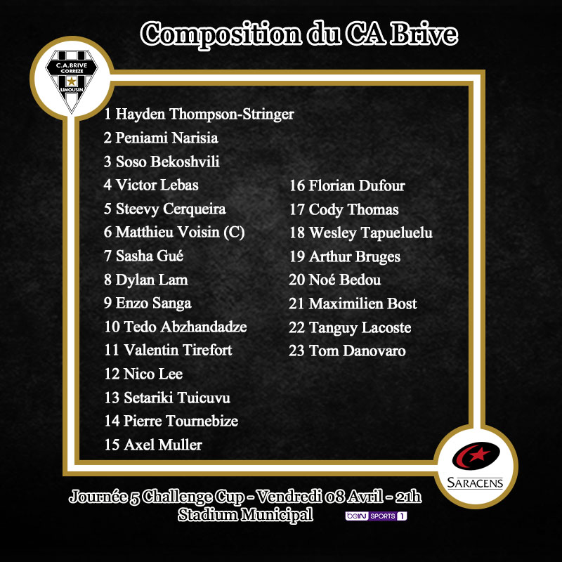 Voici le XV de départ du CA Brive pour la réception des Saracens :