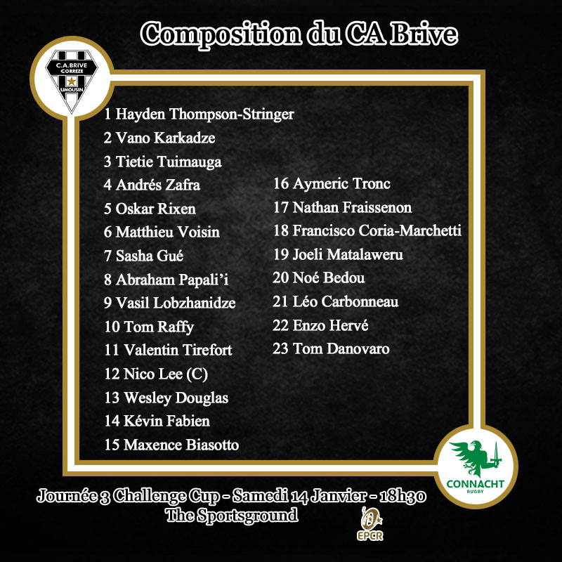 Voici le XV de départ du CA Brive pour le déplacement au Connacht :
