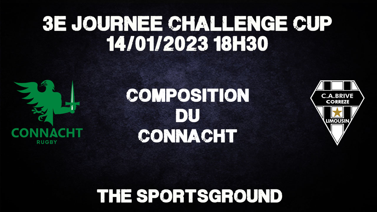 Pour cette réception, le Connacht poursuit sa rotation et si on regarde par rapport à l'équipe venue à Brive, seul le pilier gauche Peter Dooley reste titulaire. Les internationaux irlandais Finlay Bealham et Mack Hansen, de retour contre les Sharks, sont titulaires. Jarrad Butler est numéro 8 tandis que Jack Carty est à l'ouverture.