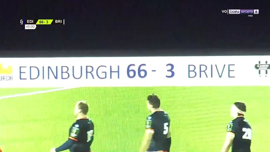 Et cela s'enchaine très rapidement. L'attaque écossaise va être parfaite. Hamish Watson est lancé plein fer dans l'intervalle puis passe à Blair Kinghorn qui trouve à son intérieur Charlie Shiel. Le demi de mêlée est repris à quelques mètres de l'en-but. Ca sorte vite et Mesulame Kunavula passe les bras pour Jamie Ritchie qui marque déjà le 3e essai (21-3, 29'). Les vagues déferlent. Nouvelle attaque grand côté qui joue parfaitement le surnombre. Watson porte le ballon juste ce qu'il faut pour décaler Emiliano Boffelli qui passe sur le bas à Darcy Graham. L'ailier marque en coin l'essai du bonus offensif pour son équipe et la pause n'est pas encore passée (26-3, 34'). Brive tente de réagir avant la pause mais ne parvient pas à avoir une sortie propre derrière un maul. Le ballon est perdu et Edimbourg contre depuis ses 5 mètres. Le ballon arrive sur Cameron Hutchinson qui tape au pied. Freddie Owsley fait parler sa vitesse et va devancer tous les défenseurs brivistes pour terminer au milieu des poteaux après un peu de dribbling (33-3, 38'). La coupe est déjà pleine mais avant de revenir aux vestiaires, Brive tente de sauver l'honner. A 5 mètres de la ligne, So'otala Fa'aso'o joue à la main une pénalité mais le soutien se met à la faute. Première période cauchemardesque de Brive qui subit trop le jeu. Edimbourg déroule et se fait plaisir.