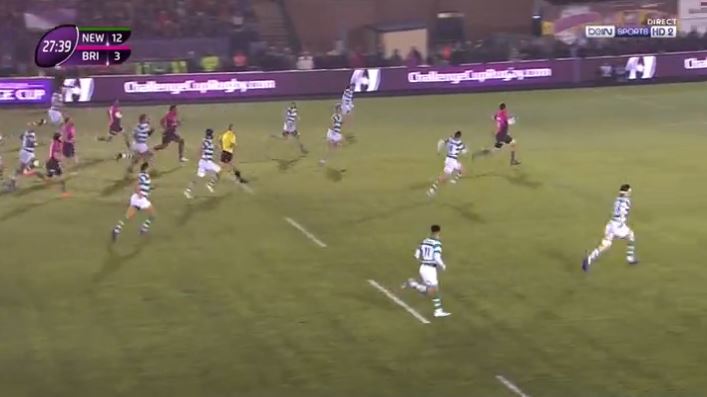 Brive est revenu au contact et veut jouer sa chance à fond durant ce quart de finale. Newcastle tente le petit coup de pied rasant pour surprendre les défenseurs brivistes dans leur dos mais Thomas Laranjeira sauve l'essai. Malheureusement, il dégage au pied alors qu'il n'est pas encore dans son en-but. Mêlée à 5 mètres pour les Falcons. La chance de marquer va passer d'un camp à l'autre. Newcastle perd un nouveau ballon dans les 22 de Brive, Burotu remonte jusqu'au 40 mètres avant de servir à hauteur Florian Cazenave. Le demi de mêlée oublie peut être Guillaume Namy sur sa gauche mais il est malgré tout repris à l'intérieur des 22 anglais. Herjean arrive pour poursuivre l'avancée mais il y a un en-avant au sol (36'). Dommage de laisser cette occasion, il y avait moyen de prendre les devants dans ce match. Matavesi, sur la dernière offensive, pense y aller mais c'était sans compter sur Laranjeira qui réussit un plaquage décisif. A la pause, Brive est mené de deux points. Le match a mis du temps pour se lancer mais après, les équipes se sont répondus du tac-o-tac. Tout reste à faire.