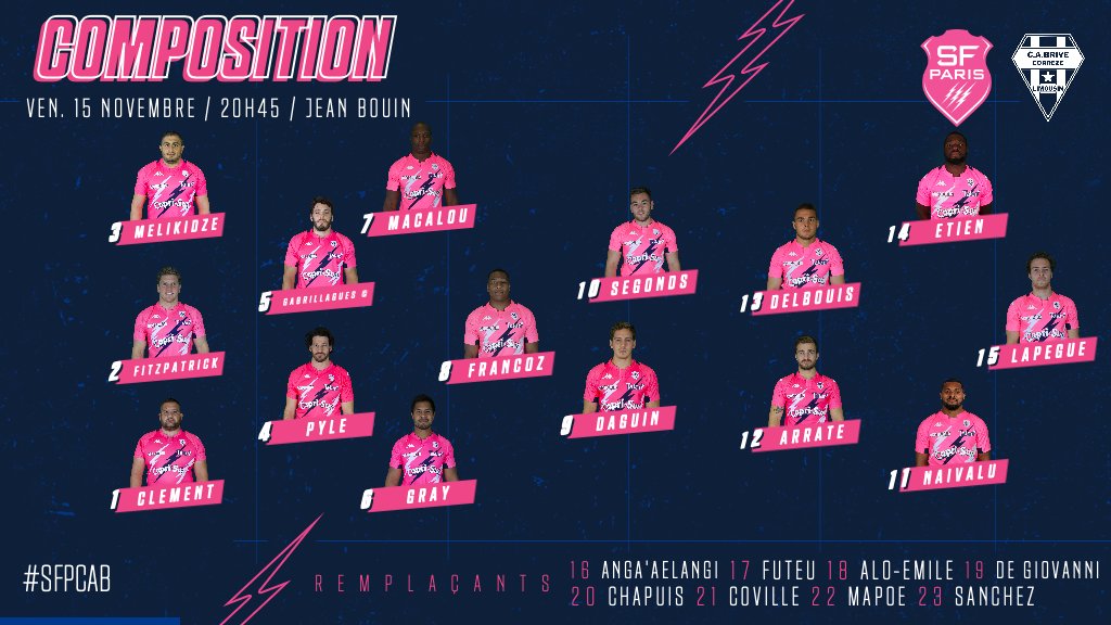 — Stade Français Paris (@SFParisRugby) November 13, 2019