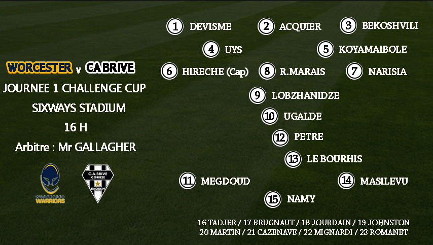 Voici le XV de départ du CA Brive pour le déplacement à Worcester :