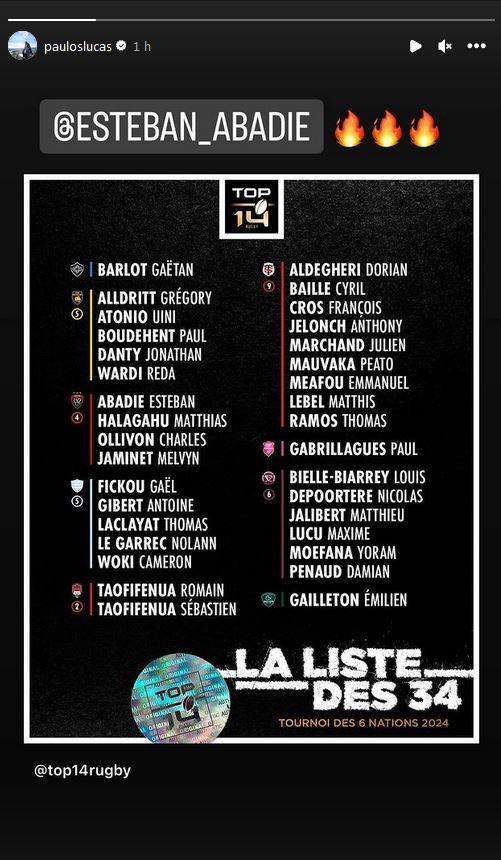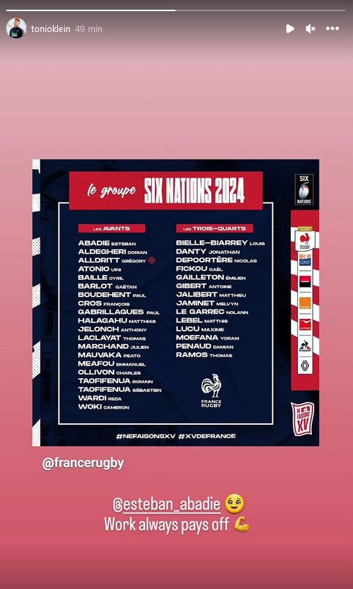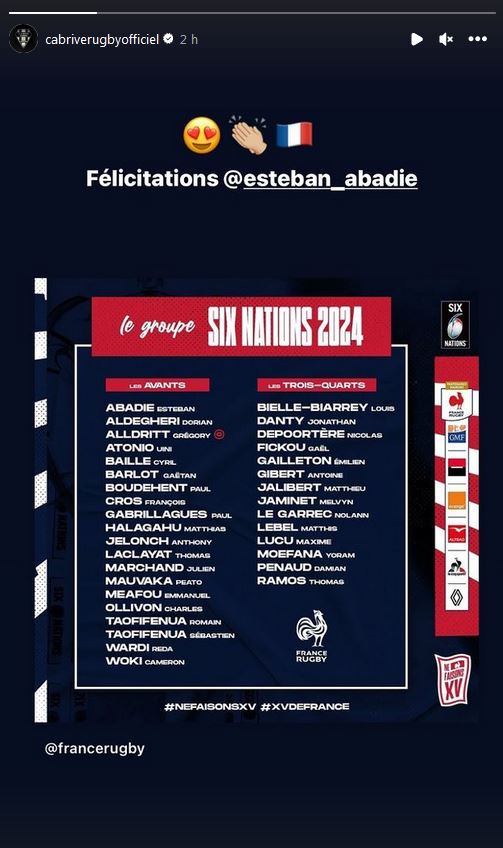Fabien Galthié a annoncé le groupe de 34 joueurs pour le prochain tournoi. Parmi les nouveaux venus, il y a Esteban Abadie.