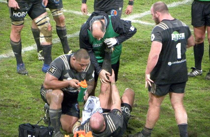 Le talonneur expérimenté reste au sol au début de la seconde période. Ses coéquipiers de la première ligne, Sila Puafisi et Vivien Devisme, prennent de ses nouvelles. A chaud, on pense à des crampes, bien douloureuses quant on voit la douleur sur le visage de Da Ros au moment d'être remplacé par Mike Tadjer.
