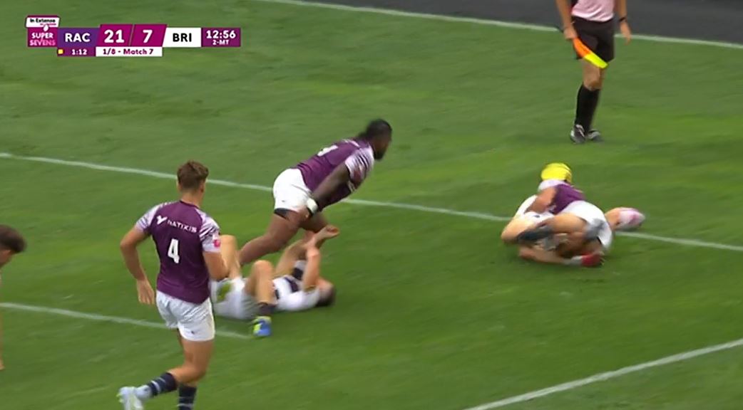 Après Monaco, Brive tire au tirage au sort le Racing 92, 3e de l'étape de Perpignan. Et le début de match est compliqué pour le CAB. Le Racing 92 exploite la moindre faille dans la défense briviste. Leka Matalawu crochète Maxence Darthou sur ses propres 22 mètres avant d'accélérer et de traverser tout le terrain. Malgré un retour défensif, le fidjien étend le bras pour aplatir le premier essai du match (7-0, 2'). Brive tente de déplacer le ballon mais la défense du Racing est bien en place. Les brivistes manquent de solutions et s'épuisent. Ce qui va créer des espaces en défense. Sur une pénalité vite jouée dans les 22 brivistes, Louis Leraitre marque un essai trops facile (14-0, 5'). La période s'achève sur une grosse et longue séquence qui met tout le monde dans le rouge. Ca va d'un sens à l'autre mais Brive tente de marquer pour revenir à la pause. Jeremy Trevithick parvient à trouver la faille en accélérant sur les extéreurs. L'arrière espagnol élimine le dernier défenseur mais il est emporté vers la touche par son élan et ne peut aller à l'essai. Après une mise au point de Philippe Carbonneau à la mi-temps, cela va mieux en seconde période. Benjamin Lefranc accélère et passe les bras pour Valentin Tirefort qui marque l'essai (14-7, 8'). Tandis que Brive a une mêlée dans les 22 mètres adverses et donc une belle occasion de marquer un essai, le ballon est perdu à la poussée et après avoir fait circuler le ballon, Leraitre accélère et s'offre un 2e essai en solitaire (21-7, 11'). Mikka Maury écope d'un carton jaune (12'). Après une grosse pression défensive, Brive récupère le ballon et écarte rapidement pour profiter de la supériorité numérique. Maxence Biasotto accélère mais il est repris tout proche de la ligne. Il parvient à transmettre à Aubin Borie qui marque l'essai de l'espoir (21-12, 13'). La transformation manquée enterre les derniers espoirs brivistes et le CAB s'incline (à nouveau) en ouverture et bascule sur les matchs de classement. Il y a des bonnes choses mais les erreurs se paient cash face à des équipes taillées pour le VII.