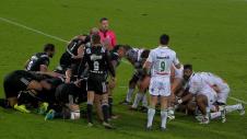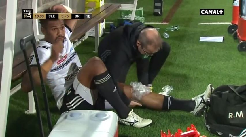 Nous sommes à la 8e minute. Alors que sur un choc précédent, Toeava se blesse au triceps (saison terminée lui aussi), Galala se fait prendre sur un retour intérieur de Grosso. Son genou gauche lâche sur cette action.