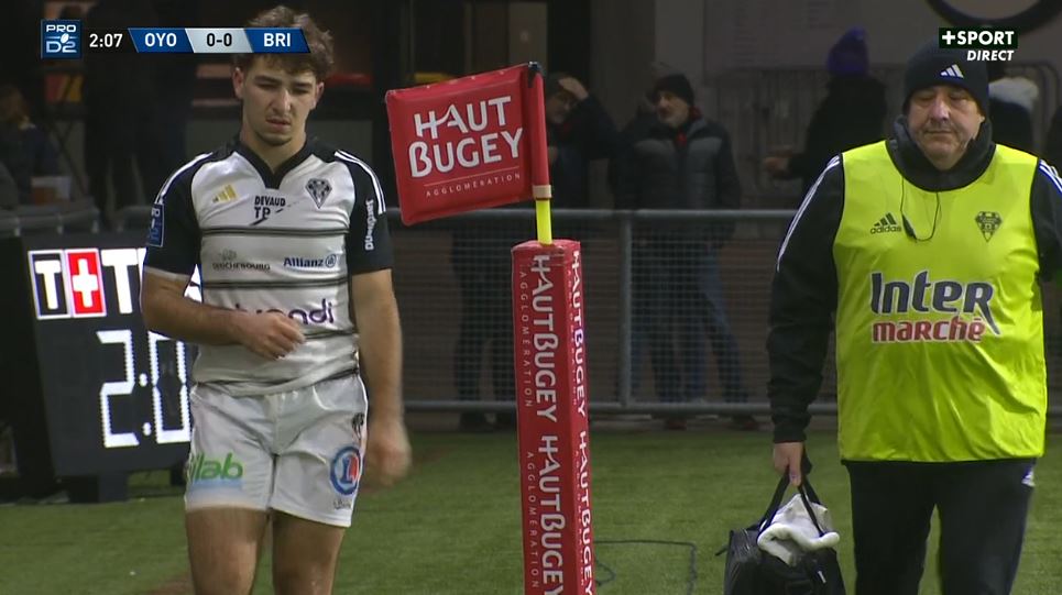 Le match venait de commencer à Oyonnax et à la suite du coup d'envoi donné par Curwin Bosch, Oyonnax récupère le renvoi et envoie à la charge deux joueurs pour gagner du terrain. Sauf que sur la charge de Jonathan Ruru, Léo Carbonneau est touché à l'épaule droite. Déjà en délicatesse avec son épaule, cette fois-ci, la situation est bien plus sérieuse car le demi de mêlée doit quitter ses partenaires dès la 2e minute de la rencontre.
