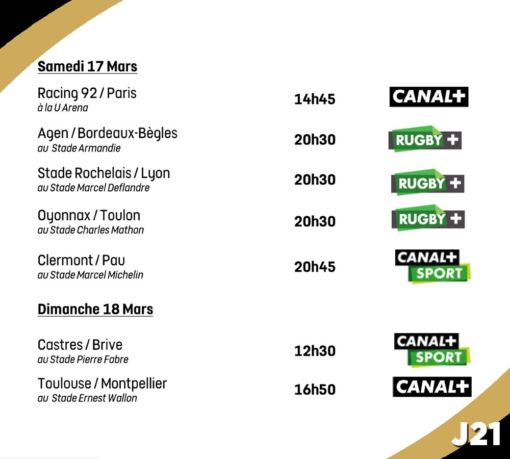 Pour la 21e journée, Brive se déplace à Castres. La rencontre aura lieu le samedi 18 mars à 12h30 et sera diffusée sur Canal+Sport.