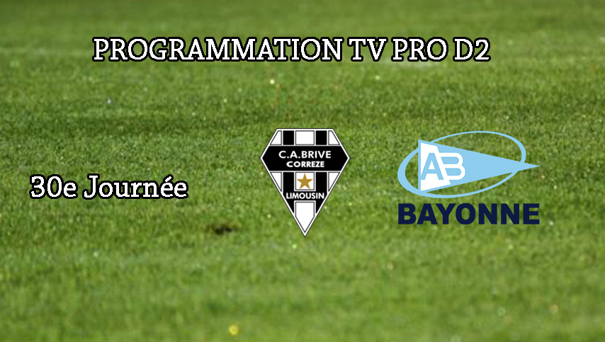 Pour la 30e journée, Brive reçoit Bayonne. La rencontre aura lieu le dimanche 5 mai à 14h30. Pour l'instant, les diffuseurs n'ont pas été annoncés.
