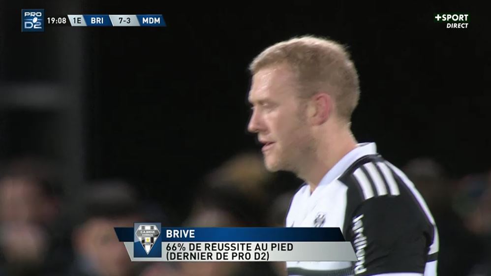 Le jeu au pied en difficulté. On en parlait juste au dessus mais une des faiblesses dans le jeu du CAB est le jeu au pied. Face aux perches, Brive manque clairement d'un buteur précis et régulier. Le CAB affiche le plus mauvais taux de réussite du championnat. Le staff briviste doit trouver une solution rapidement car cet aspect du jeu va être préjudiciable plus on va s'approcher de la fin de la saison et que les matchs vont être de plus en plus serrés. Si aucun renfort n'arrive, il faudra espérer que la solution soit trouvée parmi Stuart Olding, Jackson Garden-Bachop, Tom Raffy et Thomas Laranjeira. Mais le problème de jeu au pied n'est pas seulement face aux perches, il est aussi dans le jeu courant. Les brivistes manquent de longueur et personne n'a remplacé Gaëtan Germain dans ce domaine. Le jeu au pied est souvent neutre et tapé dans des zones qui ne mettent pas en difficulté l'équipe adverse. A contrario, l'adversaire met plus souvent en difficulté le CAB, le fait reculer. Les brivistes rencontrent également des problèmes dans le jeu aérien, ce qui fait perdre de précieuses munitions à la fois dans le camp adverse et dans son propre camp. Un travail de fond et de méthode doit être fait par le club car c'est un problème qui dure depuis trop longtemps et qui ajoute un point faible supplémentaire à l'équipe.