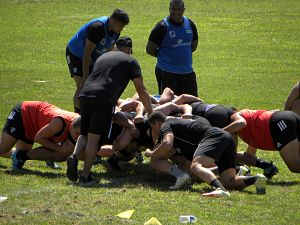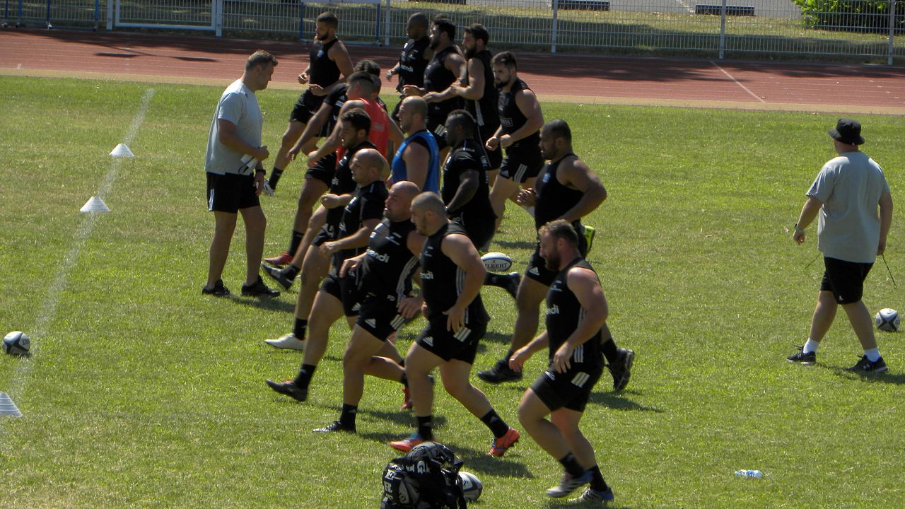 Un nouveau joueur a fait son apparition à l'entrainement : Nico Lee. Le centre sud-africain n'est pas encore en tenue de travail mais a observé de près ses nouveaux coéquipiers. Thomas Laranjeira et Rory Scholes ont travaillé en marge du groupe. L'opposition a été rythmée, avec quelques contacts bien sentis mais surtout de l'envie et de l'intensité (ce qui provoque pas mal de ballons tombés). C'est une manière ludique de faire du physique mais en touchant le ballon. Derrière, le groupe s'est scindé en deux, les avants d'un côté et les 3/4 de l'autre. Là, c'était du physique pur et simple pour les arrières. Axel Muller est en jambes au vu de l'avance qu'il avait sur les autres. Son passé de décathlonien et septiste ressort totalement dans cet exercice. Les avants ne sont pas en reste de l'autre côté mais eux ont droit à de la mêlée. Une séance dirigée à la voix et aux gestes par Marc Dal Maso. Si des japonais ou des joueurs des Highlanders étaient là, cela leur aurait rappelé des souvenirs ! La position individuelle est très importante et le nouvel entraineur des avants met un point d'honneur sur ça. Les avants en ont terminé avec leur journée ? Non ! Une petite séance de ruck+physique est prévue !