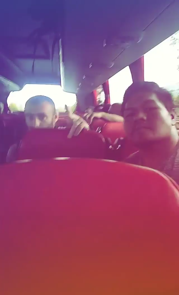 Pendant le voyage, on s'occupe comme on peut. Mike Tadjer bouquine tandis que Nadir Megdoud observe le paysage