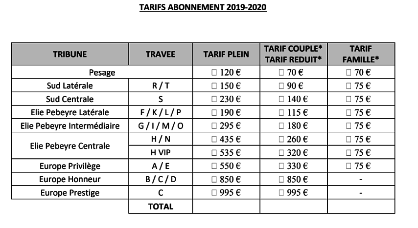 A partir du 17 juin, il sera possible de s'abonner pour cette nouvelle saison. Concernant les prix, il y a une augmentation par rapport à la saison dernière mais ils restent les mêmes par rapport à la dernière saison en Top 14.