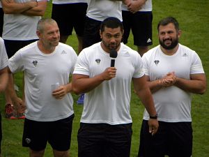 Après la présentation de l'ensemble du staff par Davidson, c'est au tour de Didier Casadéi de prendre le micro pour présenter "ses" avants. Demba Bamba reçoit une très grosse ovation. Très ovationné aussi Dominiko Waqaniburotu qui semble prendre la place de son compatriote Sisa Koyamaibole dans les coeurs des supporters. Si chaque nouveau venu adresse quelques mots au public, une première "tension" est apparue ! Présenté comme un 2e ligne, Steevy Cerqueira a repris son coach en disant qu'il était 3e ligne ! Seul absent chez les avants : Petrus Hauman.