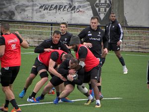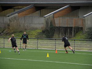 Plusieurs blessés ont travaillé avec les préparateurs physiques. Vano Karkadze et Pierre Tournebize ont travaillé ensemble, Brandon Nansen et Wesley Tapueluelu formaient un autre duo. Dans l'autre en-but, Florian Dufour et Stuart Olding travaillaient la vitesse et les appuis. Séance tonique qui se termine en boitant un peu pour le talonneur. Dan Malafosse a couru à part. Thomas Acquier et Hayden Thompson-Stringer ont regardé la séance, Acquier participant à l'atelier touche. Nico Lee est rentré d'Afrique du Sud.