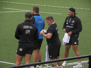 L'automne est bien là, le temps est bien gris, les tenues de tout le monde se rallongent mais l'entrainement se poursuit quoiqu'il arrive. Ce qui est intéressant est de voir de nouvelles têtes présentes dans le groupe, on ne parle pas de jokers médicaux (hélas) ou de nouveaux Espoirs mais les blessés "courte durée" qui sont de retour dans le groupe. Malgré de très nombreux blessés, le groupe global est assez complet et possède de la qualité capable de passer cette tempête de début de saison, en attendant de meilleures conditions de navigation. Tandis que les avants travaillent la mêlée, les 3/4 travaillent leurs enchainements offensifs et disons qu'après Castres, il est nécessaire de le faire pour retrouver de la confiance. Les joueurs travaillent également leur explosivité, un exercice qui laisse un peu perplexe quand on voit l'état de l'infirmerie et qu'on se dit que rajouter du physique peut entrainer de nouvelles blessures. Et comme c'est l'habitude dans le programme, on enchaine avec la partie collective. A 15 contre 15, on peut bien répéter à la fois l'attaque et la défense. Il y a eu des mouvements intéressants avec notamment Aaron Grandidier-Nkanang qui a fait parler sa vitesse. On espère que cela sera le cas samedi contre Bayonne si l'international à VII est de nouveau titulaire et s'il aura l'occasion de se montrer, contrairement à Castres. A l'issue de la séance, beaucoup de joueurs ont pris la direction des vestiaires mais d'autres ont fait un peu de jeu au pied, un peu de courses ou du plaquage avec Oskar Rixen qui a travaillé à Lucas Paulos.