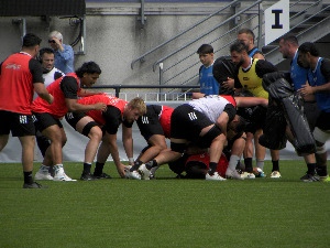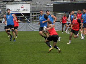 Il y a une semaine, Brive avait la pression au moment de se rendre à Vannes. L'espoir d'atteindre la phase finale pouvait s'évanouir au moment où se terminait la 29e journée. Mais voilà, en un peu moins de 24 heures, tout s'est inversé pour le CAB entre une victoire à Vannes d'un côté et les défaites conjuguées de Nevers et Mont de Marsan. Brive a repris la main dans la course à la 6e place mais la marge de manoeuvre n"est pas énorme. Brive va affronter une équipe de Biarritz qui vient chercher les points manquant à son maintien. C'est une équipe qui ne doit pas être sous-estimer et c'est peut être cela le danger pour les brivistes. Le staff doit donc maintenir sous pression leurs joueurs pour qu'ils ne tombent pas le piège qu'ils auraient eux-mêmes tendu. Sans avoir l'intensité de la semaine précédente, l'équipe s'est entrainée sérieusement, répétant ses lancements de jeu derrière la conquête et sur attaque placée. Contrairement aux dernières semaines ou à l'échauffement jeudi à Vannes, Pierre-Henry Broncan n'a pas poussé sa soufflante. Bon ou mauvais signe ? On verra vendredi soir. Tandis qu'il était sur le vélo pour le début de la séance, Stuart Olding est revenu au vestiaire pour chercher ses crampons et ainsi faire la fin de l'entrainement et également faire quelques pénalités. Pendant que les buteurs travaillaient, Benjamin Boudou travaillait ses lancers avec Arnaud Méla et les avants "sudistes" travaillaient leurs positions et attitudes au contact, le tout sous la houlette de Sitaleki Timani.