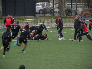 Le néo briviste prend ses marques dans l'équipe et le public aura peut être l'occasion de le voir à l'oeuvre dès samedi. Un autre joueur qui fera son retour, de suspension, c'est Tevita Ratuva. L'équipe se prépare et on sent un changement qui était finalement prévisible : Patrice Collazo est l'entraineur en chef ! La période d'observation est terminée et la montée en température est faite. Désormais, on l'entend bien et quand ça ne lui plait pas, il le dit clairement. D'ailleurs, la prestation défensive de samedi dernier ne lui a pas vraiment plu et il veut voir autre chose ce samedi. Les entrainements "Collazo" sont plus propres techniquement et avec plus d'intensité, semaine après semaine, cela se confirme. On remarque aussi une belle complicité entre Enzo Hervé et Nicolas Sanchez. Le retour progressif en forme de Hervé est peut être pas étranger à cela. Si les Espoirs vont faire leur retour en championnat ce dimanche face à Perpignan, certains restent à disposition de l'équipe première comme Francisco Coria Marchetti, Nathan Fraissenon, Noé Bedou, Léo Carbonneau, Kévin Fabien et Mathis Ferté.