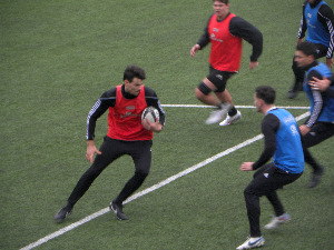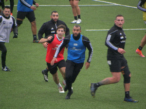 Vendredi et le week-end qui a suivi ont été des jours étranges pour l'équipe du CAB. D'un côté, il y a la victoire avec bonus offensif face à Rouen mais avec un contenu qui laisse à désirer et d'un autre côté, il y a la maladie qui touche le fils de Pierre-Henry Broncan. Ce dernier n'a pas dirigé la séance (ce qui est bien compréhensible), laissant sa place à ses adjoints mais très sûrement en donnant ses consignes sur ce qui devait être fait à l'entrainement pour être en bonnes conditions pour affronter Montauban. On retrouve donc pour ce premier jour d'entrainement un staff qui avait assuré l'intérim du côté de Nevers. On espère que cela se passera mieux vendredi soir ! La séance s'est bien passée, sans accroc ni problème, avec des joueurs qui retrouvent de plus en plus de confiance au fil des victoires qui s'enchainent. Mais il va falloir débloquer quelque chose dans la tête pour retrouver le jeu offensif du début de saison et qui s'est absenté depuis. Il y a de bons enchainements et de bonnes combinaisons aux entrainements, ne reste plus qu'à mettre ça en application en mode "match" avec un adversaire qui sera prêt à contrer les différentes tactiques. A l'issue de l'entrainement, les avants Espoirs ont travaillé la touche avec Arnaud Méla comme entraineur et Issam Hamel et Benjamin Boudou comme talonneurs. A l'opposé, Thomas Laranjeira et Tom Raffy ont travaillé face aux perches. Compte tenu des absences, ils seront peut être alignés vendredi soir et seront les buteurs de l'équipe qui a bien besoin de se trouver un buteur fiable et régulier pour aborder sereinement les matchs jusqu'à la fin de la saison.