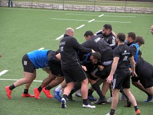Après une victoire, on dit toujours qu'on récupère mieux et qu'on se sent mieux. En tout cas, la victoire contre Clermont dans le derby a fait du bien aux têtes brivistes ainsi qu'au classement. C'est donc avec moins de pression que Brive va recevoir Montpellier samedi, reste à voir si le CAB joue mieux sous pression que sans pression. Si plusieurs Espoirs ont disparu de l'entrainement collectif, il y a une raison : les internationaux sont de retour dans le groupe pour cette semaine. Certains ont même changé de coiffure, n'est ce pas Cody Thomas et Steevy Cerqueira ! C'est donc avec un groupe fourni que Jeremy Davidson peut préparer cette seconde réception de rang. Il est même trop fourni dans certains ateliers, on ne parvient plus à distinguer tout le monde ! Trêve de plaisanterie, on sent malgré tout moins de pression et de tension qu'il y a une semaine mais ça ne veut pas dire que c'est le Club Med. Brive veut enchainer et s'imposer face à Montpellier. Brive a besoin de points et de victoires pour le maintien. Alors les joueurs travaillent tous les aspects du jeu pour corriger les défauts vus face à Clermont et s'adapter au jeu (offensif et défensif) de Montpellier. De l'application et du sérieux, voilà ce qu'il faudra pour battre le MHR. Et on termine la séance, comme à l'habitude, par du jeu au pied pour certains et de la mêlée pour d'autres. Il est alors temps ensuite de ranger les affaires, partir manger et revenir pour la prochaine session d'entrainement.