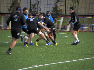 Le déplacement à Aurillac ne s'est pas passé comme prévu et le résultat attendu était bien loin des attentes de l'équipe. Alors, il faut repartir au boulot pour se remettre dans le droit chemin et préparer la venue de Soyaux-Angoulême qui reste sur une belle victoire face à Nevers la semaine dernière. Contrairement à la semaine passée, les brivistes s'entrainent sous le soleil même si on est bien loin de la chaleur estivale ! Renforcé par plusieurs Espoirs dont Lewis Noon et Kévin Fabien, les récents champions de France à VII avec les Barbarians, le groupe travaille pour corriger ce qui n'a pas fonctionné à Aurillac et faire en sorte de sortir vainqueur de l'affrontement face à Soyaux. L'équipe a alterné entre séances collectives et séances séparées. Tout a été travaillé, entre les enchainements entre 3/4, la conquête pour les avants et bien évidemment le jeu collectif. Cela n'a pas empêché des erreurs qui ont quelque peu irrité Patrice Collazo qui n'a pas hésité à mettre deux, trois soufflantes aux joueurs concernés. Le manager veut que cela soit propre et bien exécuté à l'entrainement pour pouvoir bien le faire mais cette fois avec la pression de l'adversaire en face. Compte tenu de l'horaire, une petite collation est prévue avant de repartir pour la fin de la séance. Matthieu Voisin et Nico Lee observent la séance, tout comme Marcel Van der Merwe. Le 3e ligne en profite pour aider sur l'atelier touche. Les conditions de jeu seront meilleures que vendredi dernier donc il y a la possibilité de voir un peu plus de jeu. Le public ne demande que ça, de revoir le jeu pratiqué en tout début de saison qui a disparu depuis (mis à part contre Grenoble).