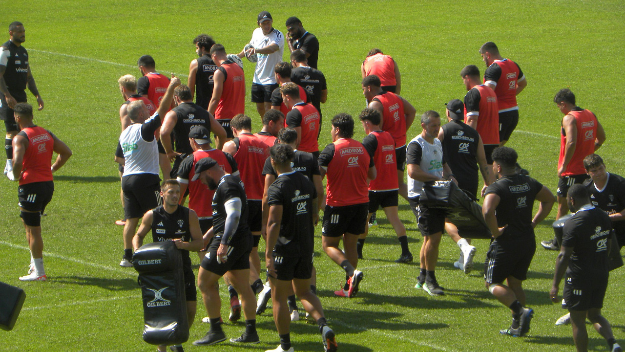 La préparation a été plus courte que prévue mais elle s'est faite. Le stage en Andorre s'est bien passé. Les deux matchs amicaux ont donné des choses positives et des axes de travail. Maintenant, tout ceci est dans le rétroviseur avec le début du championnat ce vendredi du côté d'Agen. Après les amicaux contre Biarritz et le Racing 92, c'est désormais Agen au programme mais cette fois lors d'une rencontre officielle. L'effectif ne sera pas complet car en plus des blessés/incertains, il manque Mathis Ferté, de retour cette semaine et qui reprend avec le groupe des blessés, Vasil Lobzhanidze, préparant la coupe du monde avec la Géorgie, Aaron Grandidier-Nkanang, préparant la saison à VII et les Jeux Olympiques, et Taniela Sadrugu, pas encore arrivé. Malgré tout, l'effectif est en nombre pour préparer cette première rencontre avec notamment l'intégration de plusieurs Espoirs, moins que lors des matchs amicaux mais il en reste encore quelques uns. Sous un chaud soleil, les joueurs travaillent avec intensité, comme depuis plusieurs séances, des séances collectives plus longues que la saison dernière. Est ce que cela sera plus efficace ? Seul le terrain de la Pro D2 le dira. Avec une coupe de cheveux plus dans ce qu'on connaissait avant, Asaeli Tuivuaka fait parler sa puissance et on comprend mieux son surnom de "Tank". Compte tenu du peu de séances cette semaine, c'est bien possible que l'équipe qui a débuté contre le Racing 92 ne soit guère chamboulée pour se déplacer à Agen. En tout cas, cela sera une bonne base de travail. En fin de séance, les avants ont travaillé la mêlée tandis que certains 3/4 ont travaillé le jeu au pied comme par exemple Thomas Laranjeira et Tom Raffy avec Régis Lespinas (rejoint en toute fin par Simon Gillham qui doit encore travailler son jeu au pied !).