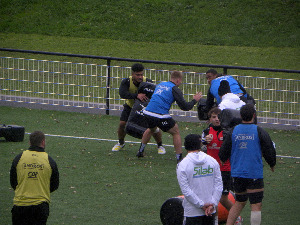 A savoir si les joueurs ont respecté les demandes de Pierre-Henry Broncan et sont restés sobres après la victoire face à Mont de Marsan ? En tout cas, après le jour de repos ce dimanche, tout le monde était sur le pré ce lundi pour une semaine courte mais intense. Les Espoirs, vainqueurs de Pau 21-12, sont là aussi, en tout cas plusieurs d'entre eux, comme c'était le cas avant et comme c'est le cas maintenant. L'effectif est donc en nombre pour travailler et corriger les erreus vues par Pierre-Henry Broncan et son staff vendredi soir. Ce chantier va demander plus de temps que celui de la tribune qui avance à un bon rythme. En plus de travailler l'attaque et la défense, on travaille aussi les habitudes au sol, que cela soit au grattage ou au déblayage. Le tout sous le regard de Maxime Chalon. Passé maître dans le grattage, Saïd Hirèche distille ses conseils à Oskar Rixen et Taniela Sadrugu en fin de séance. Encore une journée complète de travail avant la mise en place mercredi et le match à Colomiers jeudi soir.