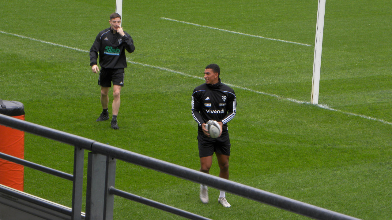 Tandis que ses coéquipiers s'entrainaient, Aaron Grandidier-Nkanang a fait son retour à Brive, quelques jours après avoir bouclé un stage de trois semaines aux Fidji avec France VII. L'ailier du CAB poursuit sa préparation physique, en compagnie d'Antoine Klein. Il faut dire que le tournoi à Dubaï approche rapidement.