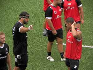 Finalement, la partie séparée s'est déroulée sous la pluie (ou le déluge) tandis que le collectif s'est passé sans pluie. Les Espoirs sont toujours présents et notamment chez les avants, il faut dire que c'est le groupe le plus touché par les absences. Tout le staff était là pour diriger la séance et Philippe Carbonneau et Jean-Baptiste Péjoine sont ceux qui donnent le plus de voix. Sous le regard de quelques blessés (Bituniyata, Hirèche, Lees), les joueurs travaillent leurs enchainements offensifs et leurs placements défensifs pour être meilleurs et corriger les défauts vus face à Lyon. On espère que certains enchainements mettront à mal la défense de l'USAP samedi.