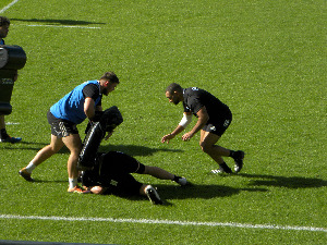 Pour la dernière fois de la saison, une journée de Pro D2 va se jouer en milieu de semaine. Brive va entamer la journée dès ce mercredi, par ce qui s'apparente au déplacement le plus long de la saison. Dès ce mardi matin, direction plein nord, la Normandie et Rouen. La victoire contre Grenoble vendredi a fait du bien aux têtes même si elle a fait mal aux corps (voir ici). Le nombre de séances est donc limité vu le laps assez court entre les deux rencontres. Heureusement, le staff avait anticipé la chose et travaillait les deux matchs (Grenoble et Rouen) depuis deux semaines. Ce lundi, c'était histoire de travailler les derniers réglages. Des réglages qui se sont fait à l'heure du déjeuner. Les joueurs ont rapidement été mis dans le vif du sujet avec une opposition intense et appliquée. Le staff et notamment Patrice Collazo donne de la voix et n'hésite pas à recadrer tout le monde, les joueurs et même le staff médical. On espère voir les mêmes séquences offensives que face à Rouen mais pas forcément les mêmes séquences défensives ! Il faudra être plus appliqué sans ballon et surtout être concentré. Rouen est dans une situation difficile et a besoin de points. Brive doit être sérieux et ne pas laisser d'espoirs à son adversaire. Pendant la séance, Nico Lee a passé une tête et avait un étrange maillot vert et or sur les épaules mais qu'est ce que cela peut-il bien être ?!! La séance a été copieuse et longue, les joueurs s'accordant une petite pause "ravito". Quelques minutes et on repart. Le groupe a alterné ateliers collectifs et ateliers séparés. Alors que la 4e tribune grandit petit à petit, l'équipe du CAB espère en faire de même et enfin décrocher une première victoire à l'extérieur ce mercredi. Et pouvoir profiter de quelques jours de repos l'esprit libéré (et l'ultimatum de la direction validé et réussi).