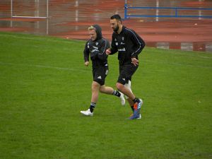 Pas de chance pour les brivistes à l'entrainement. Si le soleil était au rendez vous lors de l'entrainement de l'après-midi, c'est la pluie qui était de sortie le matin. Pendant ce temps là, le terrain d'honneur a pu tester son système de drainage avec ce front pluvieux qui traverse la Corrèze en ce début de semaine. Dans quelques jours, le groupe va voir revenir ses mondialistes géorgiens qui seront disponibles pour le déplacement à Castres (après avoir bénéficié de quelques jours de repos comme l'ensemble de l'effectif la semaine prochaine). En l'absence de Jeremy Davidson, le trio d'entraineur est formé par Jean-Baptiste Péjoine, Marc Dal Maso et Alex King. Sous une pluie qui s'intensifie au fil de la séance, les joueurs travaillent et se préparent à recevoir Bordeaux. On donne de la voix et on n'hésite pas à souffler dans les bronches de ceux qui font des erreurs lors des enchainements. Etrangement, c'est efficace ! Concentration maximale avant cette quatrième réception de la saison. En fin de séance, Steevy Cerqueira et Stuart Olding ont travaillé physiquement (au moment où le soleil était un peu de retour !).
